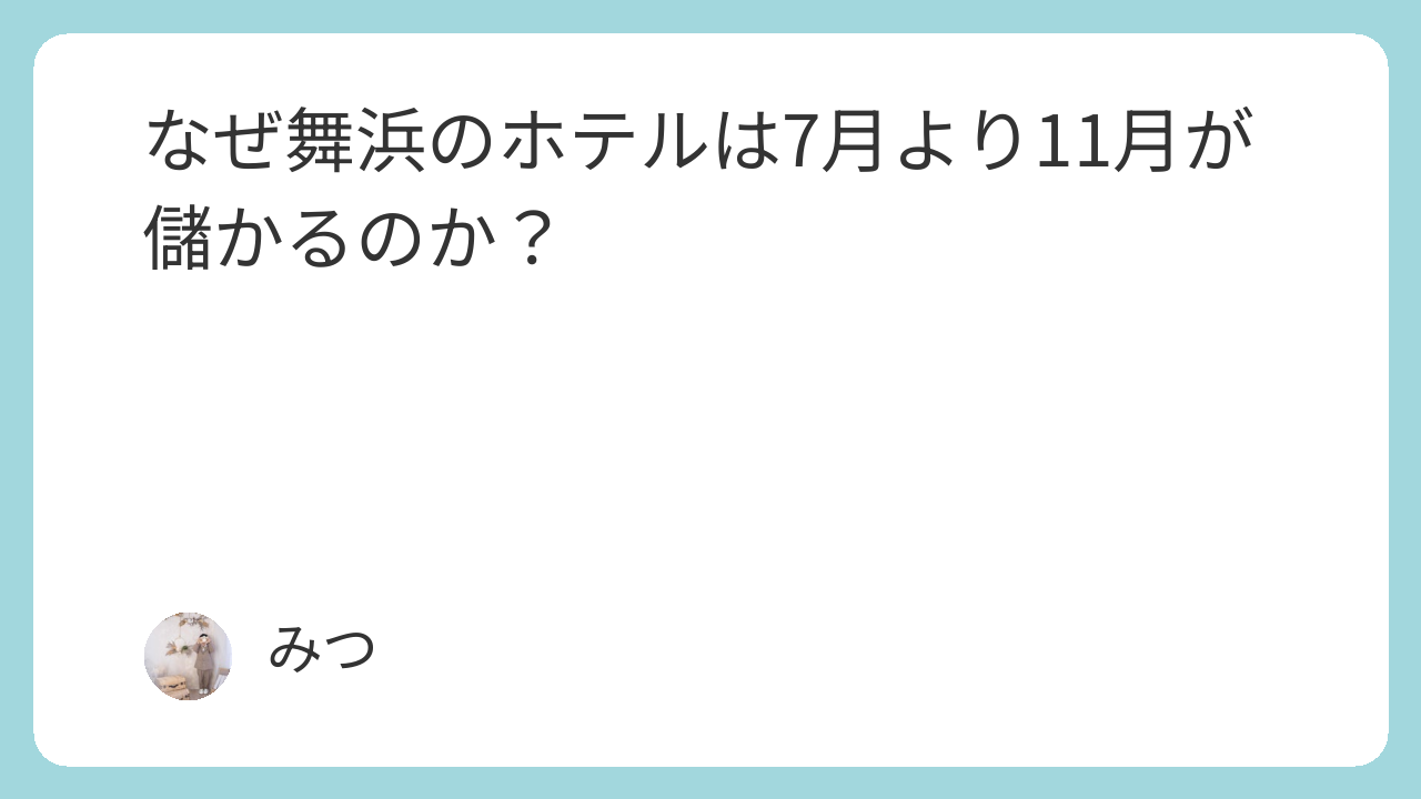 - 舞浜の場合、夏も冬も「満室に近い」が、ADR(客室単価)の差が2倍近くある